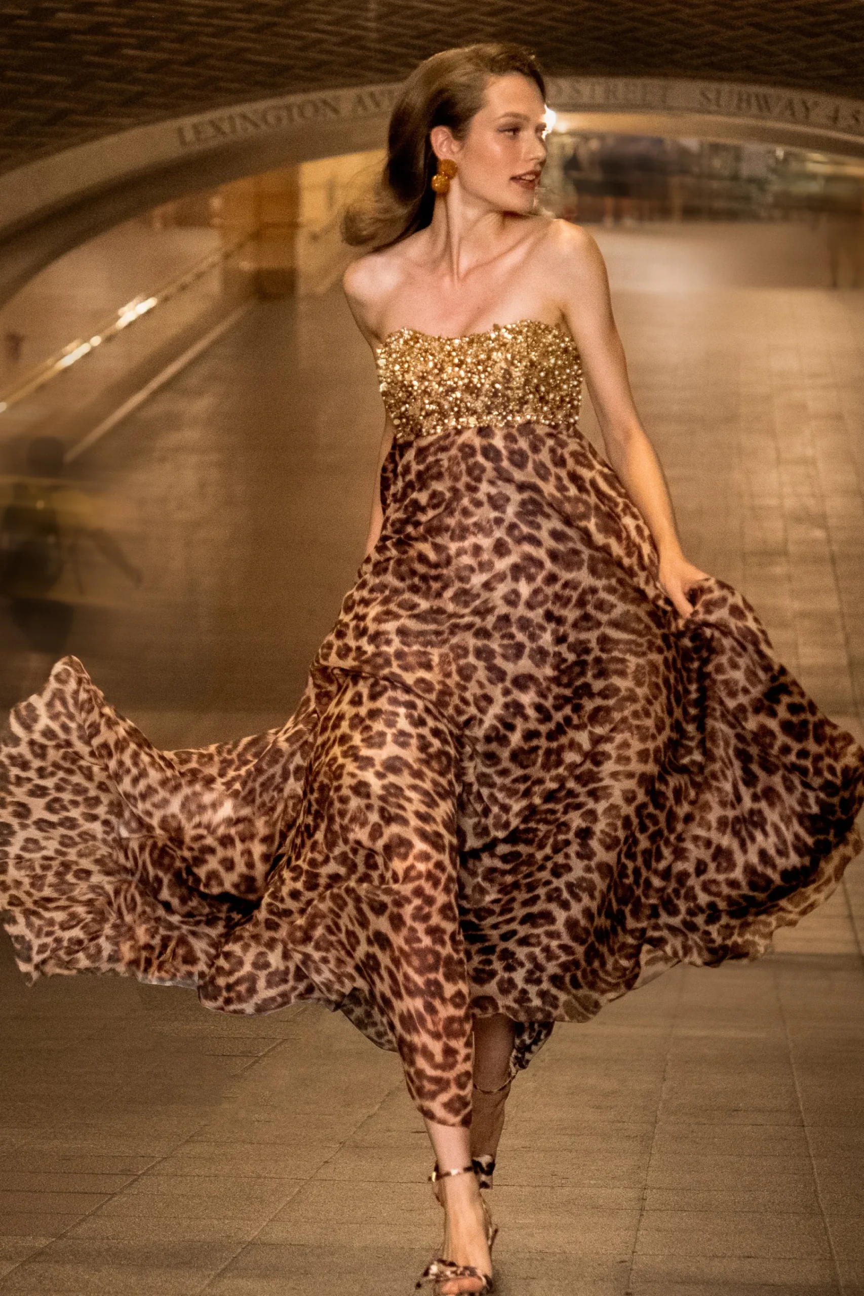 It’s obvious upon first look: Ames is FIERCE. Where to start with this one? She’s a full-length, strapless gown in our all-over leopard print. The bodice features gleaming gold embellishment that catches the light in all the right ways, while the big cat print cascades down in the most elegant, ethereal way. Prepare to turn heads with this statement piece.