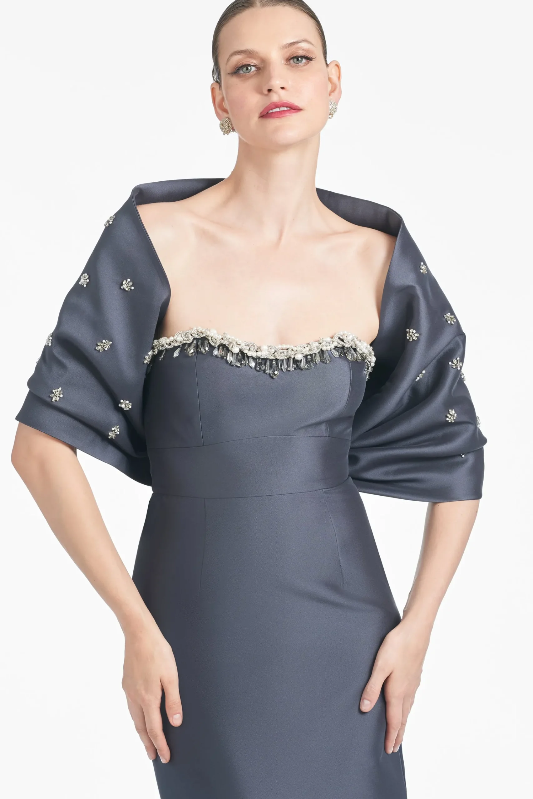 Introducing our Hug Shawl in Charcoal. Whether you’re looking for more modesty or for an added element to your look, this is the hero piece of the season. She’s made of rich Mikado and fits around you like a warm hug.