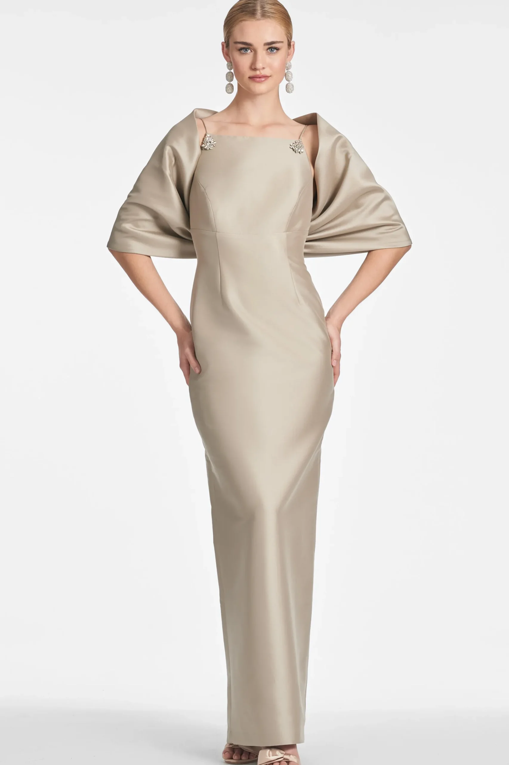 Introducing our Hug Shawl in pewter. Whether you’re looking for more modesty or for an added element to your look, this is the hero piece of the season. She’s made of rich Mikado and fits around you like a warm hug.