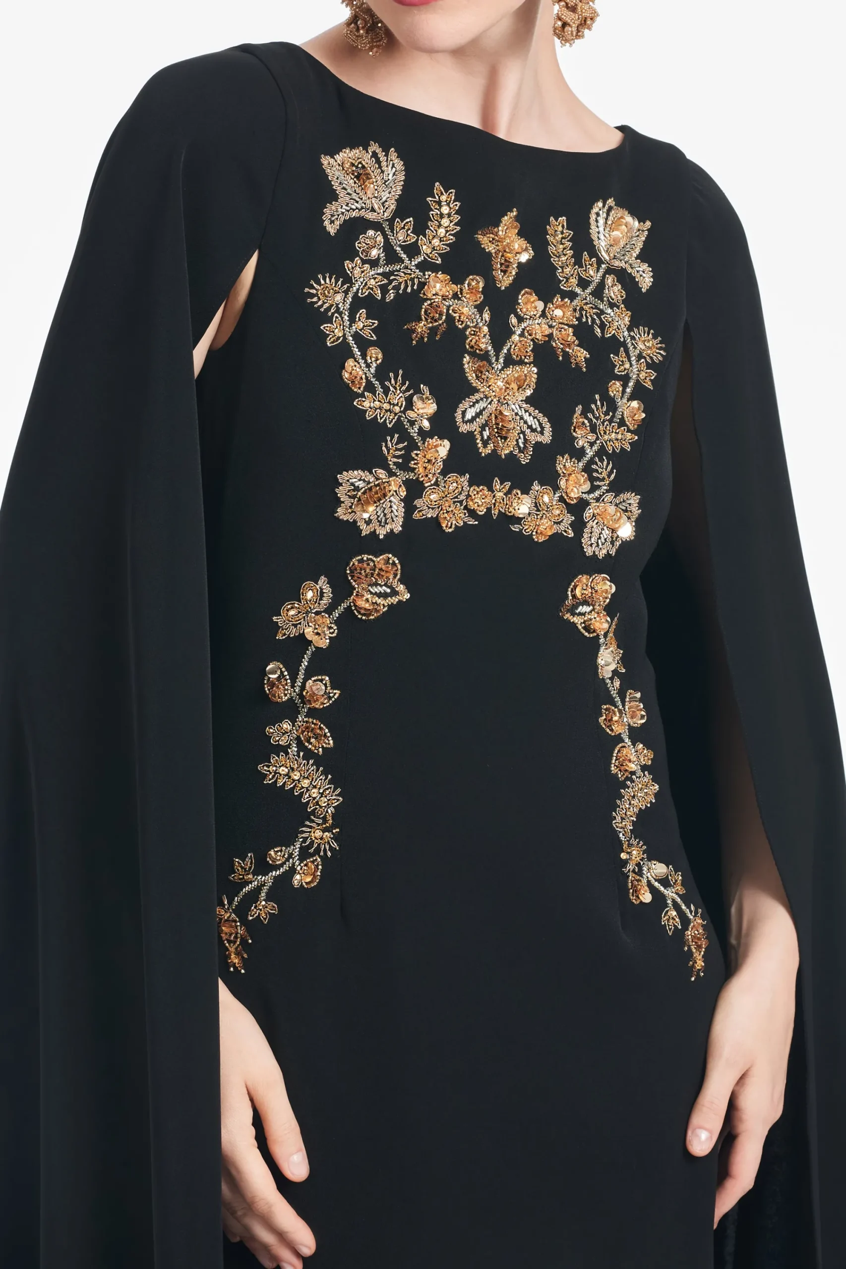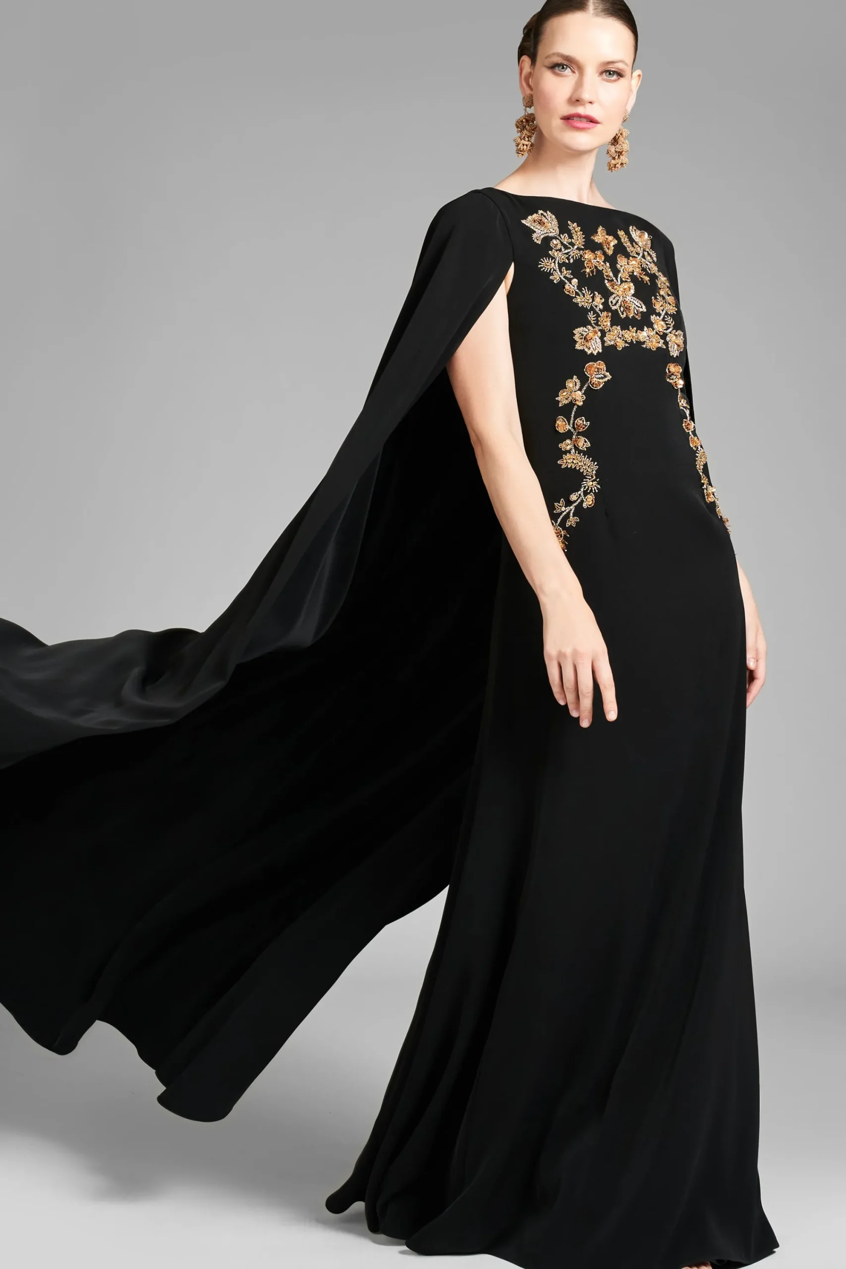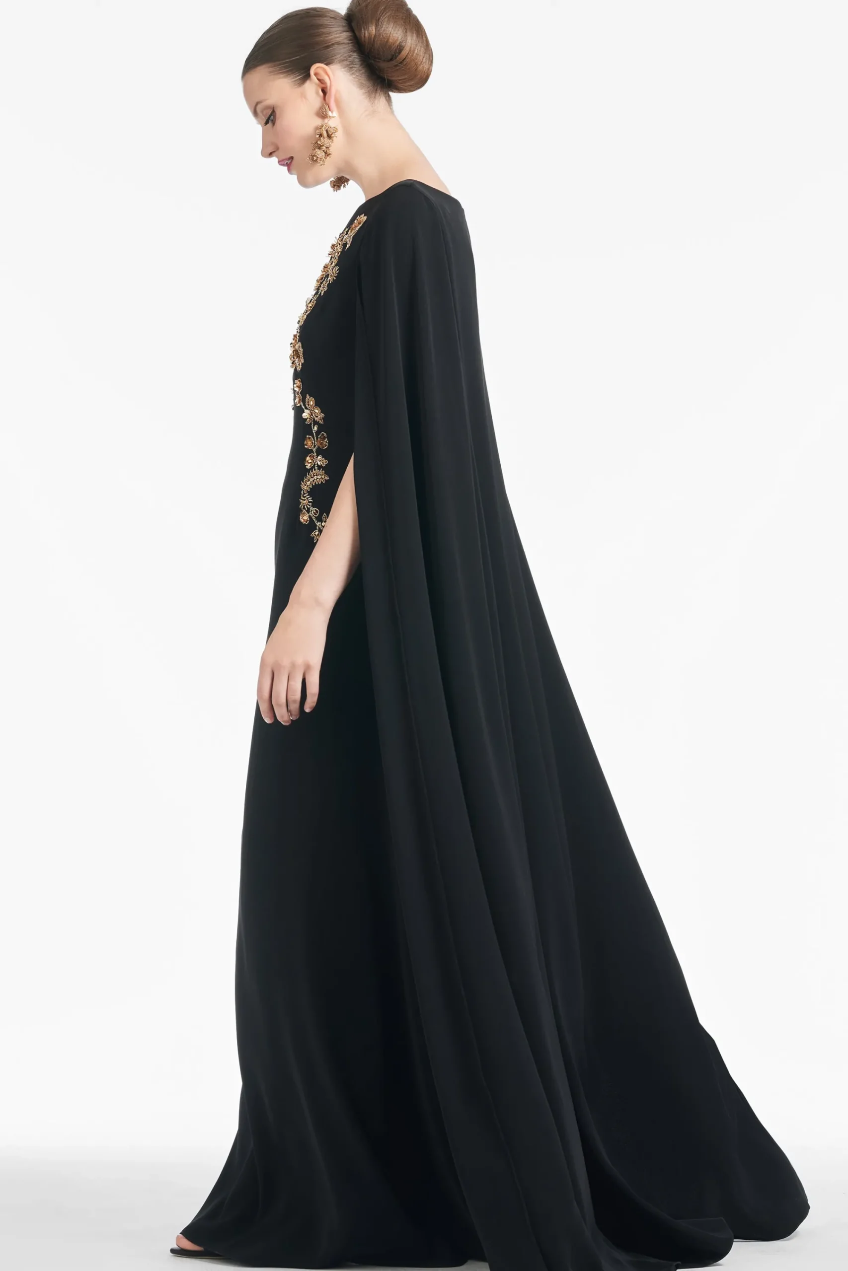 Experience elegance in the stunning Vittoria Gown. Its embroidered gold detailing and unparalleled craftsmanship provide an elegant and dignified look that will make you feel like royalty. Showcase your regal beauty with this work of art.