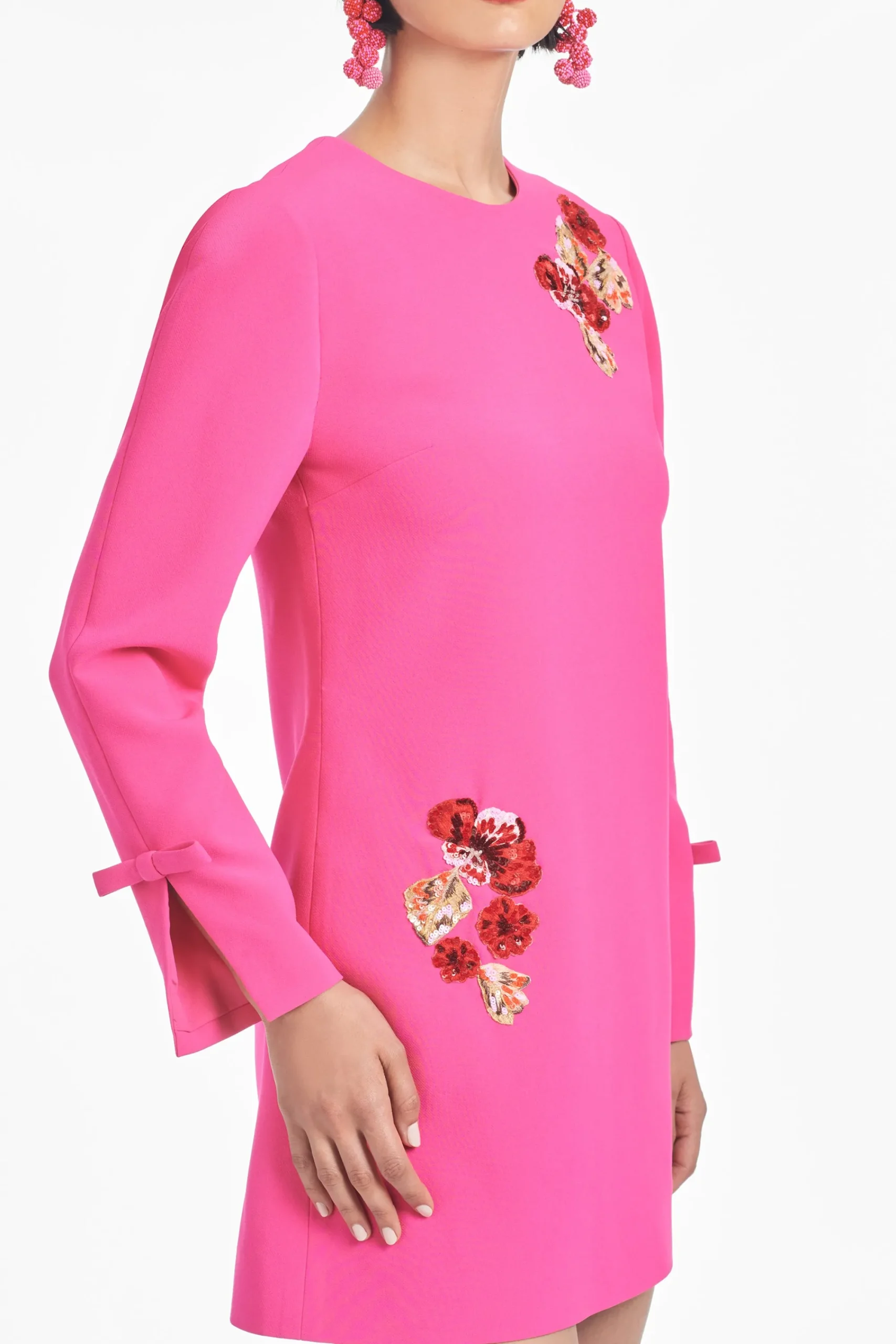 This Lily Dress in Electric Pink is designed to add an easy, stylish pop of color to any wardrobe. The hand embroidered florals make her a work of art. Crafted from a stretch crepe fabric, the mini dress is designed for comfort and all-day wear dressed up or down. Enjoy modern style with this classic piece.