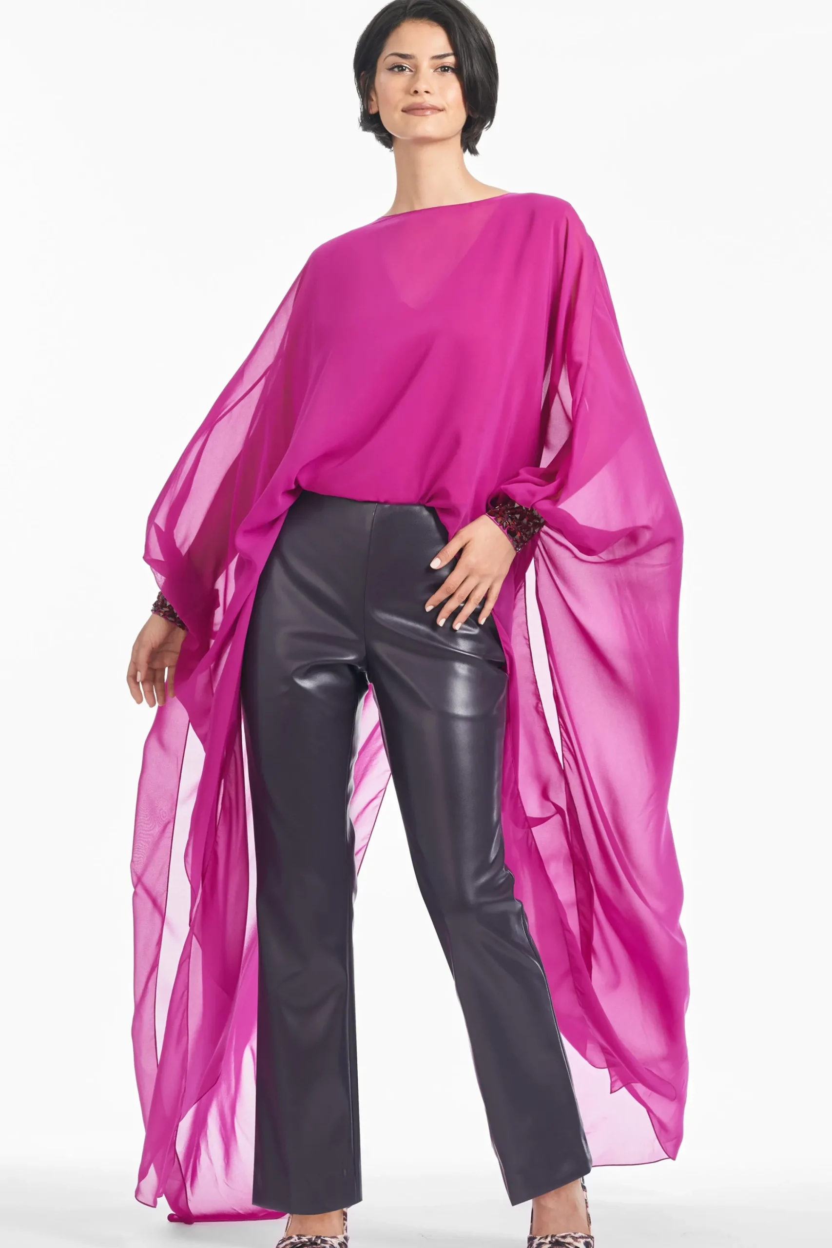 Faux leather pants are a wardrobe staple, and the Kitty pant is the piece your closet is missing. The plum trouser-style pant can be dressed up with a chiffon blouse or the matching plum Reid top for your next date night or cocktail party.