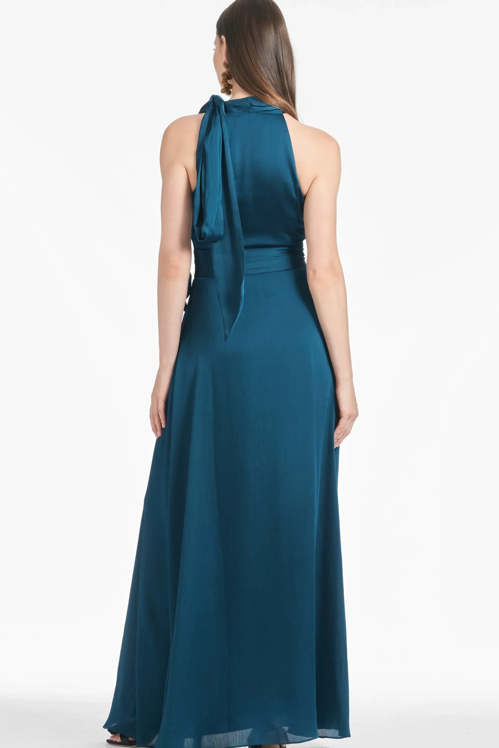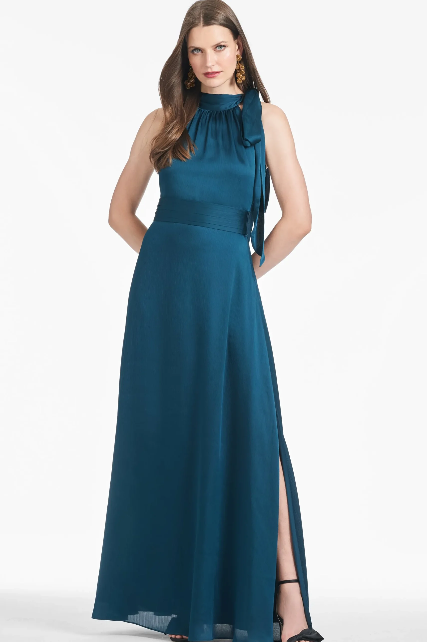 Kayla in Bottle Green is simple yet romantic. She’s an elegant maxi dress with a self-tie at the neckline and a stitched-on pleated waistband that hits at the true waist for the most flattering shape. We design all of our dresses in the Essential Social collection with the intention that they can be enjoyed again and again. A timeless dress should be worn often and well.