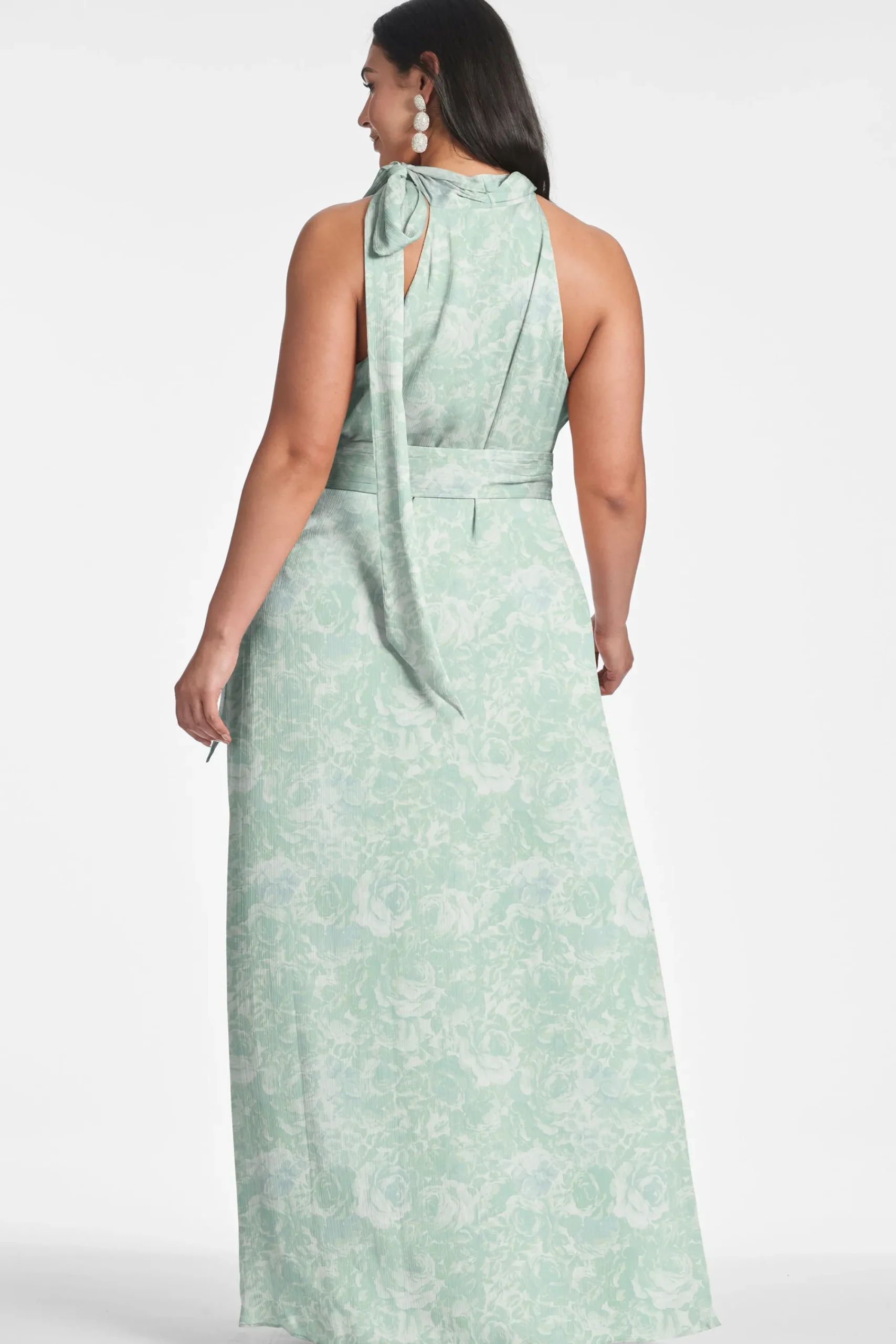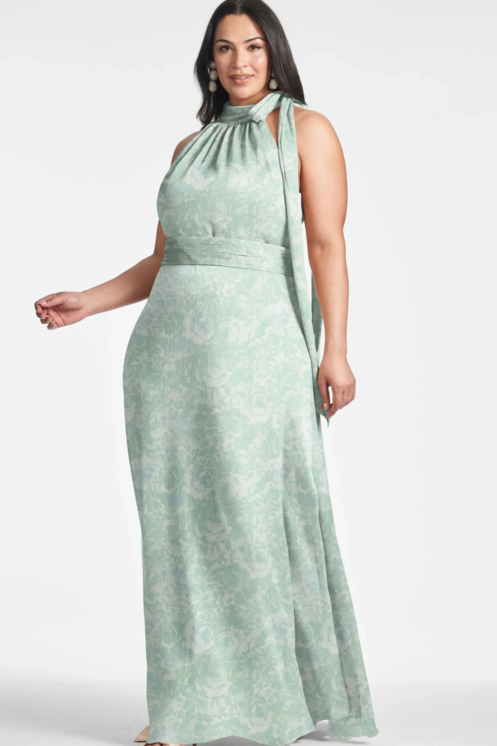 Kayla in Sage Painted Floral is simple yet romantic. She’s an elegant maxi dress with a self-tie at the neckline and a s…