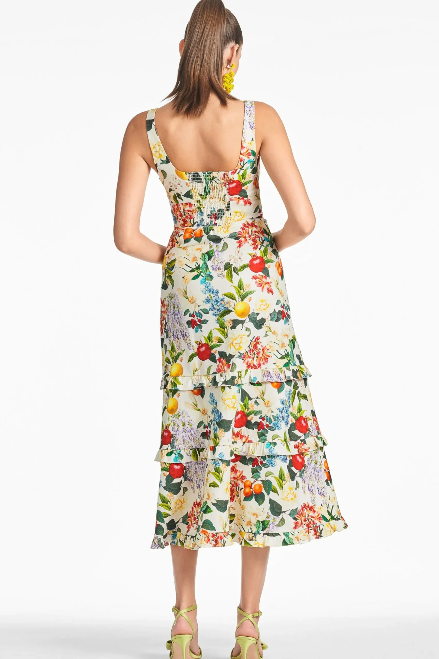Caterina is one of those dresses that makes you want to book a plane ticket on the spot. This stretch linen midi, seen here in our Giorno Giardino print, is the perfect companion for your next warm weather vacay or trip to the beach.