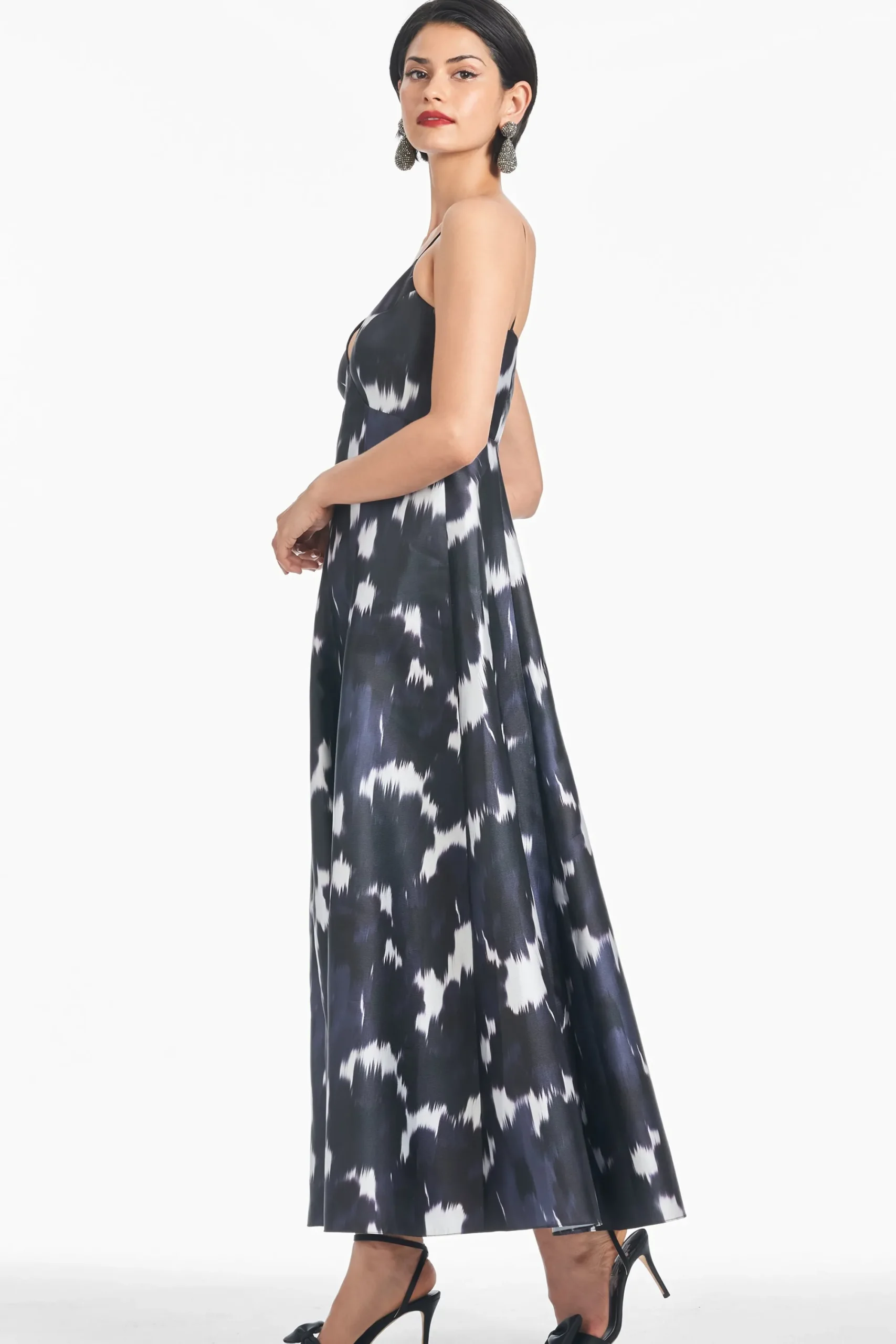 Meet Allesandra: feminine, flirty, and simply fabulous. This fit-and-flare midi dress is made in our signature Stretch Mikado fabric for the most flattering fit. The allover print, Dark as Night Ikat, adds the perfect touch of romance to the already sophisticated silhouette.