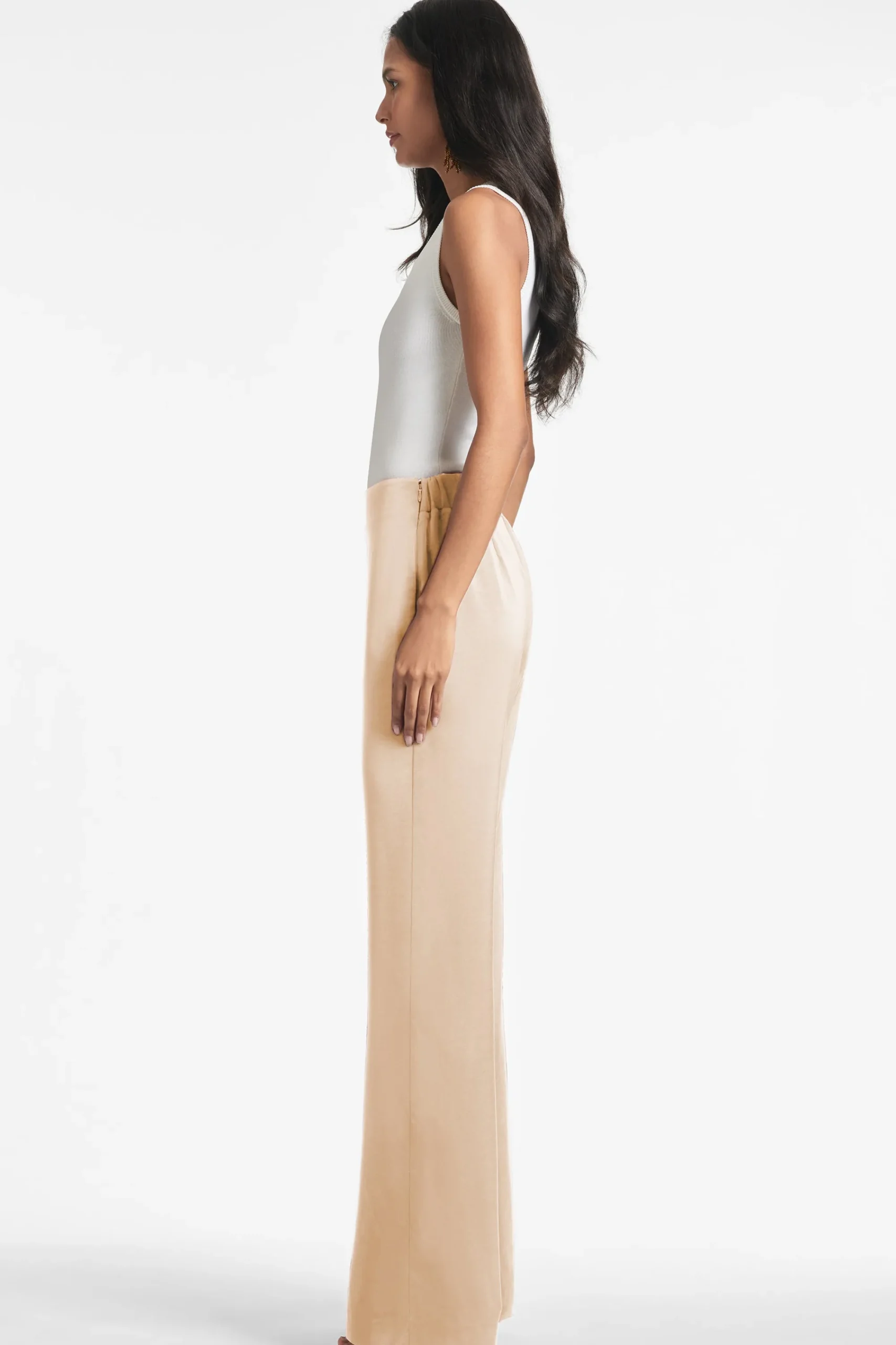 Alli is the ideal evening pant. An easy, chic wide-leg trouser shape is featured in our satin crepe for an amazing drape. The flat front pant has concealed elastic at the back for a more comfortable fit. Perfect back to your favorite “date-night” tops or and knits.