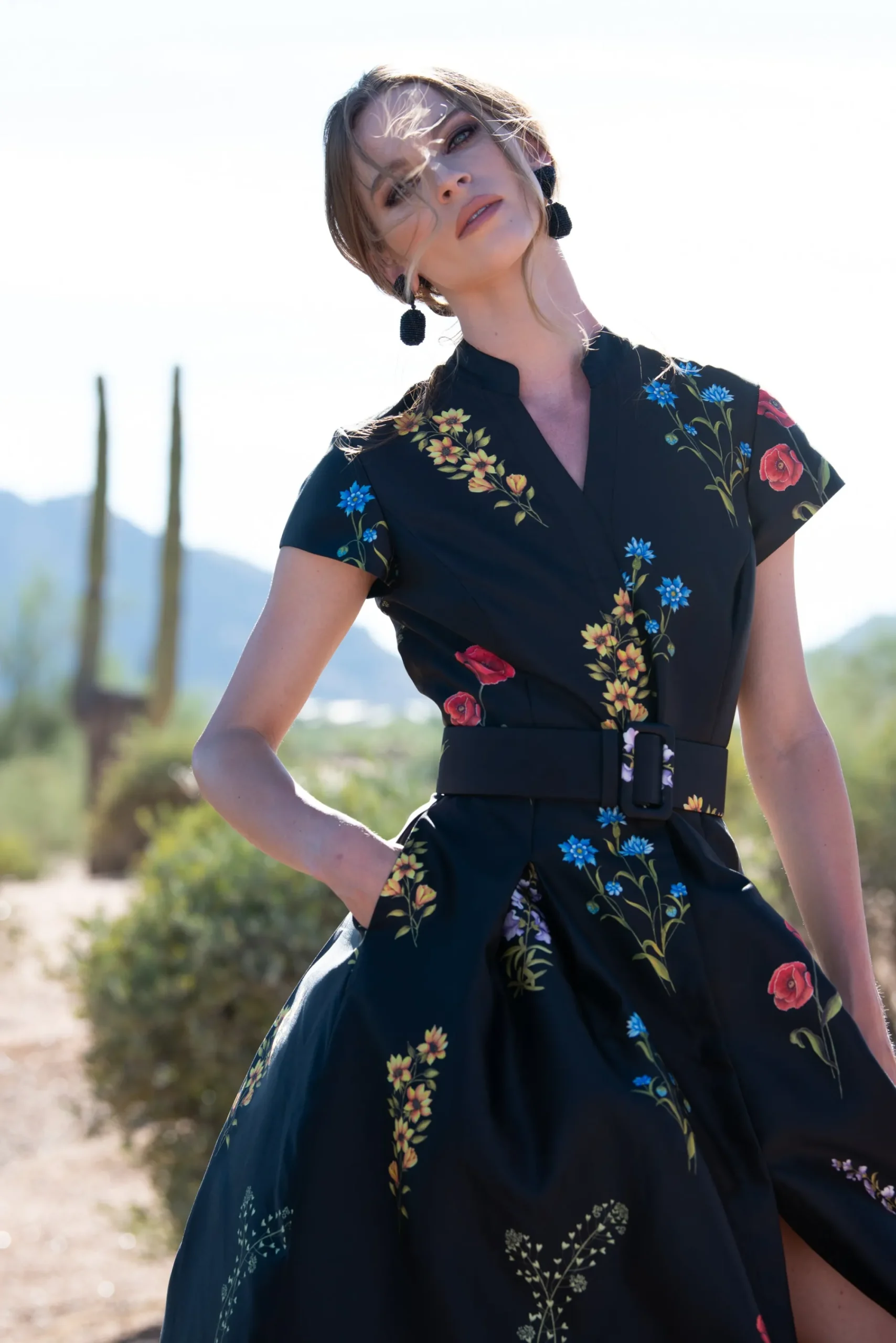 Make no mistake, the Marta Gown isn’t a wall flower. She is the epitome of timeless, elevated personal style, and quiet luxury. The fit and print are everything. The floor length silhouette is partially inspired by the impeccable tailoring a “shirt style” fit. This incredibly flattering body finds its way into our hero Noir Bouquet print. A banded collar is tastefully cut away to meet concealed front buttons. Our black Mikado fabric with the multi-color florals make this dress a classic and a statement all at once.