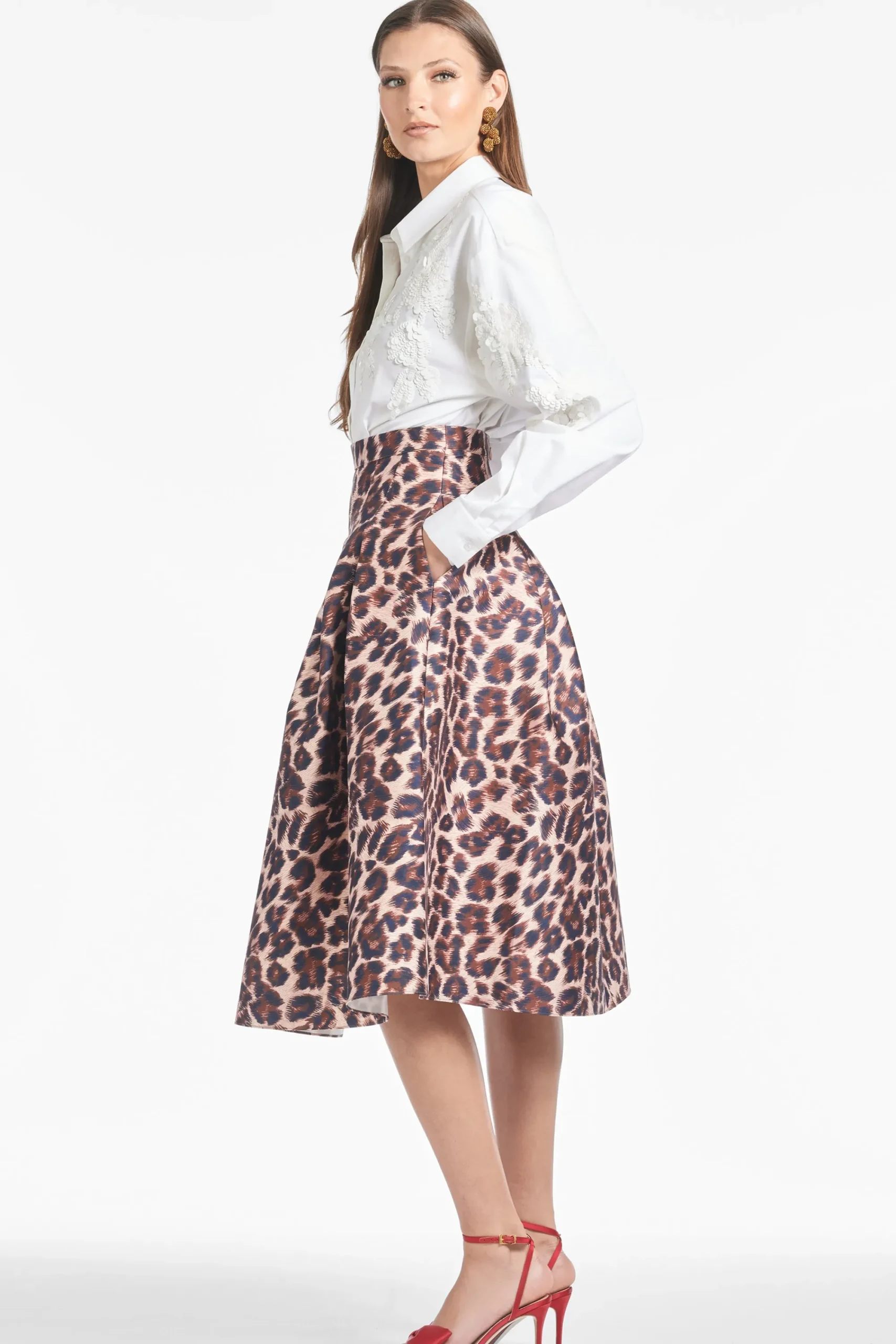 Introducing the Lydia Skirt – a luxurious piece inspired by our iconic Leighton skirt. Crafted from Mikado fabric in our new standout Big Cat print, it pairs beautifully with the complementary Astor Top or the matching Calliope coat.