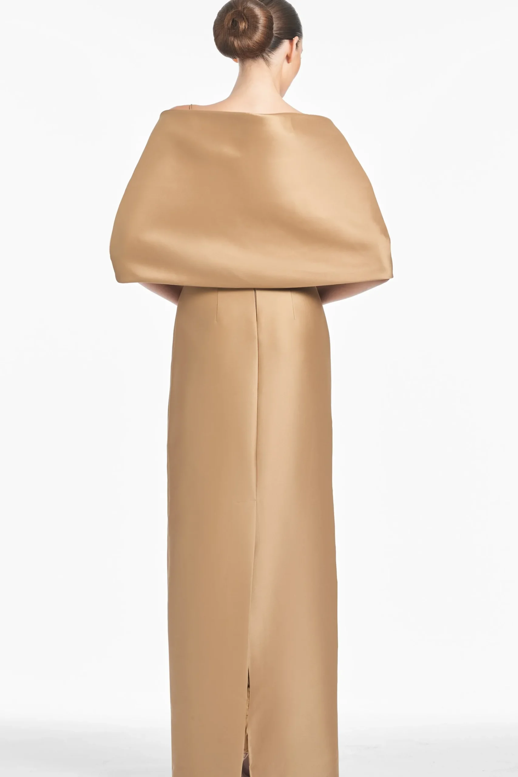Introducing our Hug Shawl in Chestnut Gold. Whether you’re looking for more modesty or for an added element to your look, this is the hero piece of the season. She’s made of rich Mikado and fits around you like a warm hug.