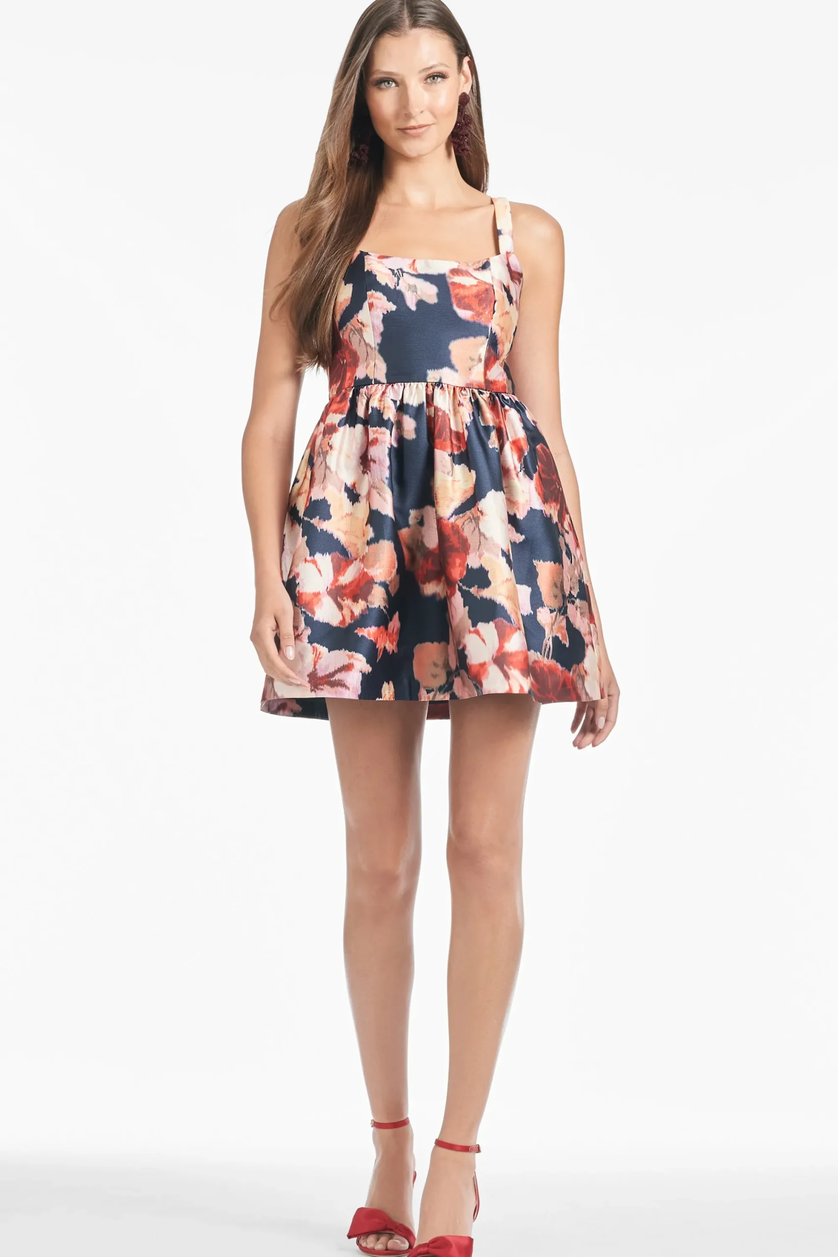 The Cora Dress in our Bedford Bouquet print is the perfect mix of fun and elegant. Crafted from rich Mikado, her fitted bodice and A-line silhouette is flattering and timeless. With its moody florals and pink and red accents, this is sure to be the mini you reach for for your next special occasion.